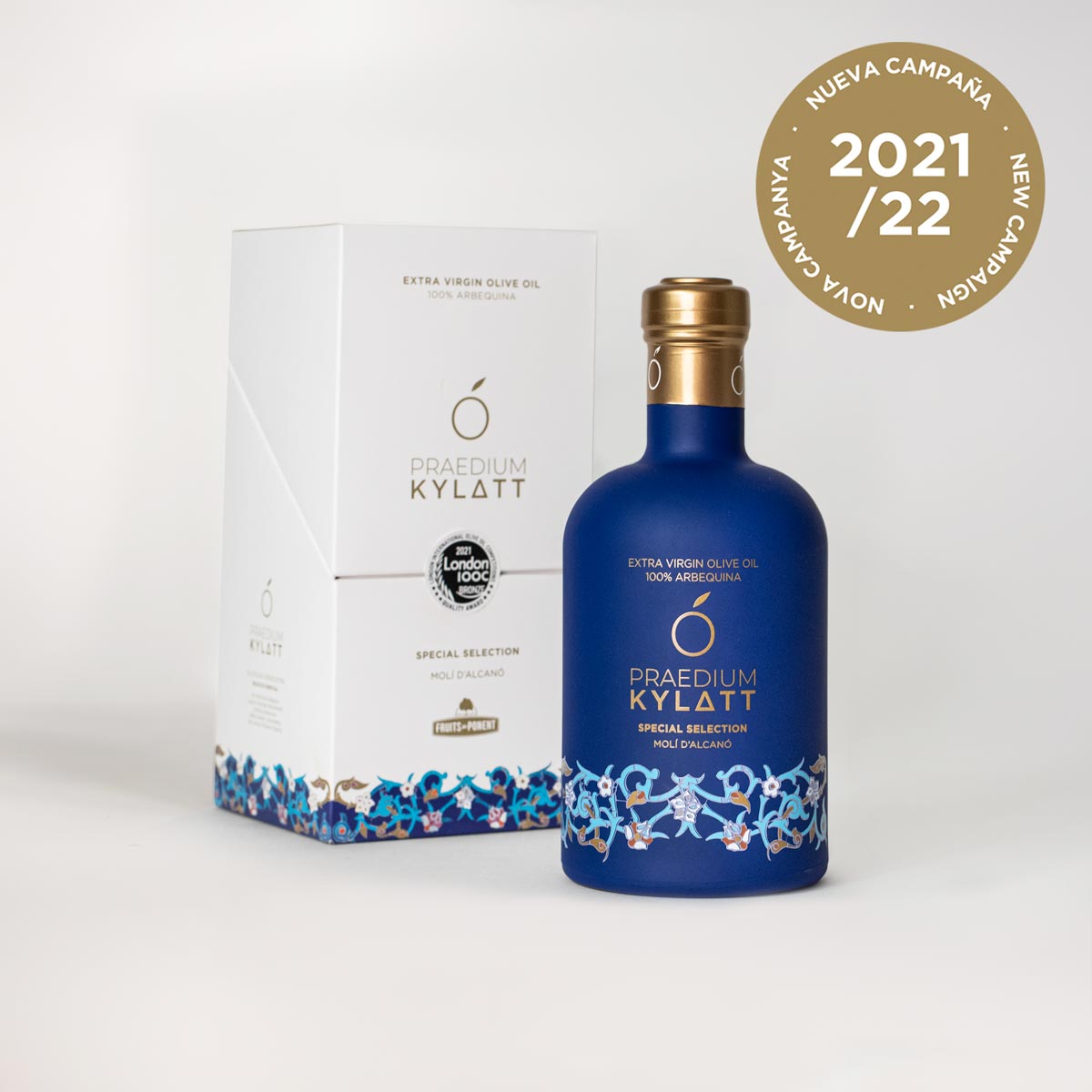 Praedium Kylatt es un aceite de oliva virgen extra de ‘Special Selection’ elaborado a partir de aceitunas arbequinas de campos seleccionados y recolectadas a principios de octubre.