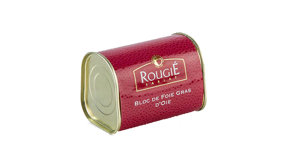 Bloc de Foie gras de oca de la casa Rougié. Elaborado 100% con foie gras, una pizca de sal, pimienta y armagnac. Peso neto 145gr.
