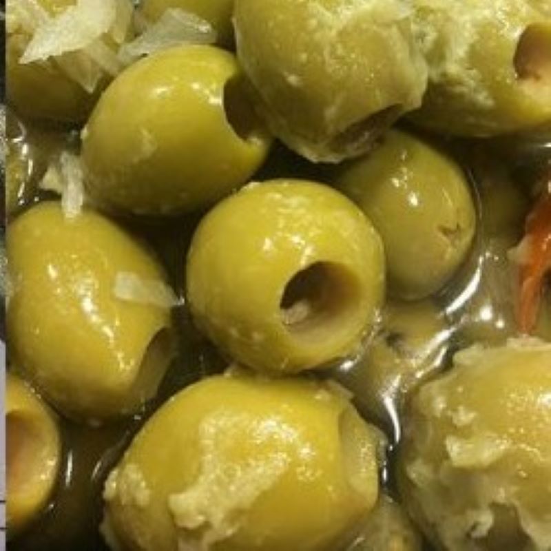 Aceitunas Verdes Gordal elaboradas con aceite de oliva virgen extra y aliñadas con cebolla y guindilla con un toque picante agradable en boca.