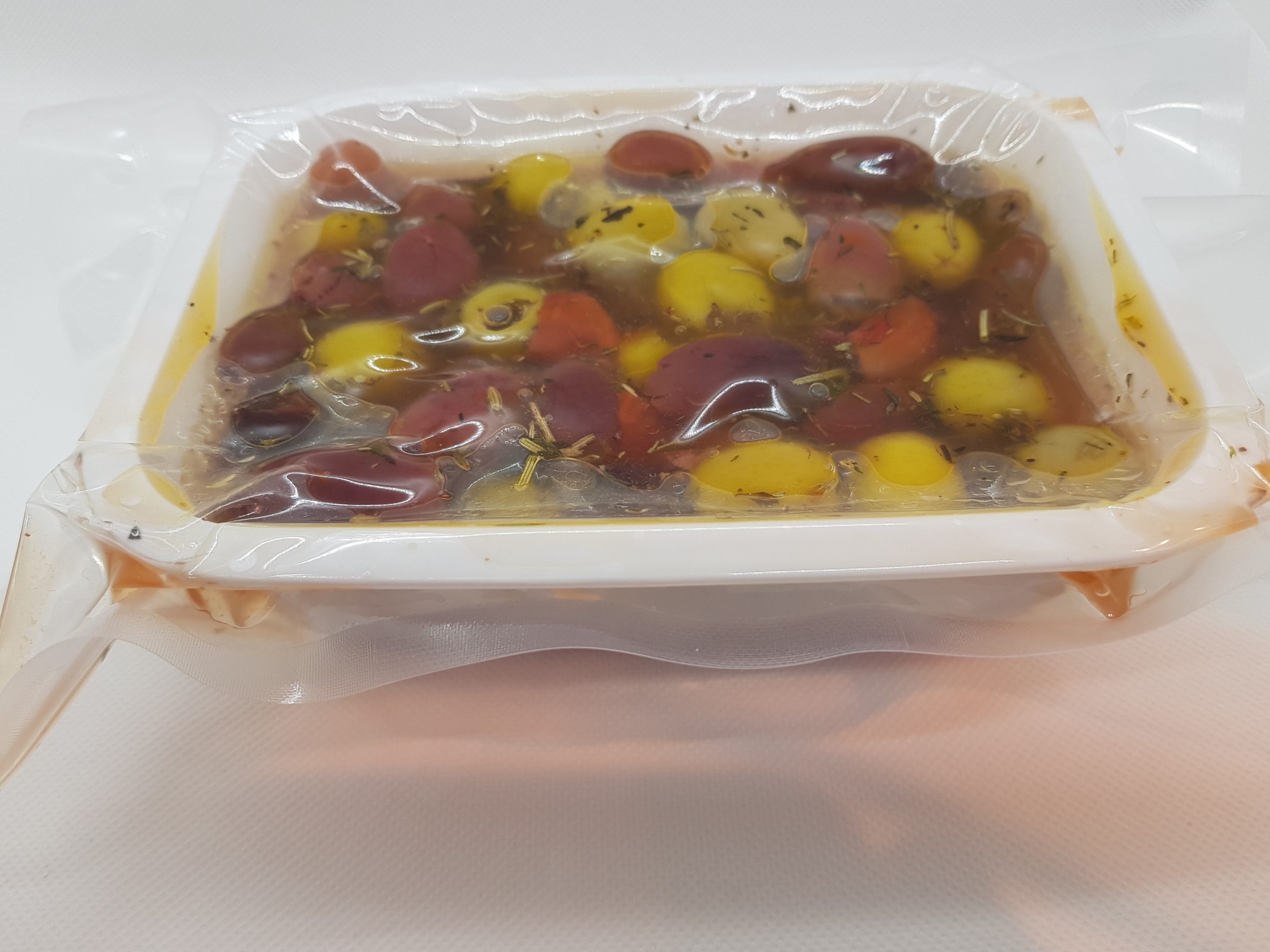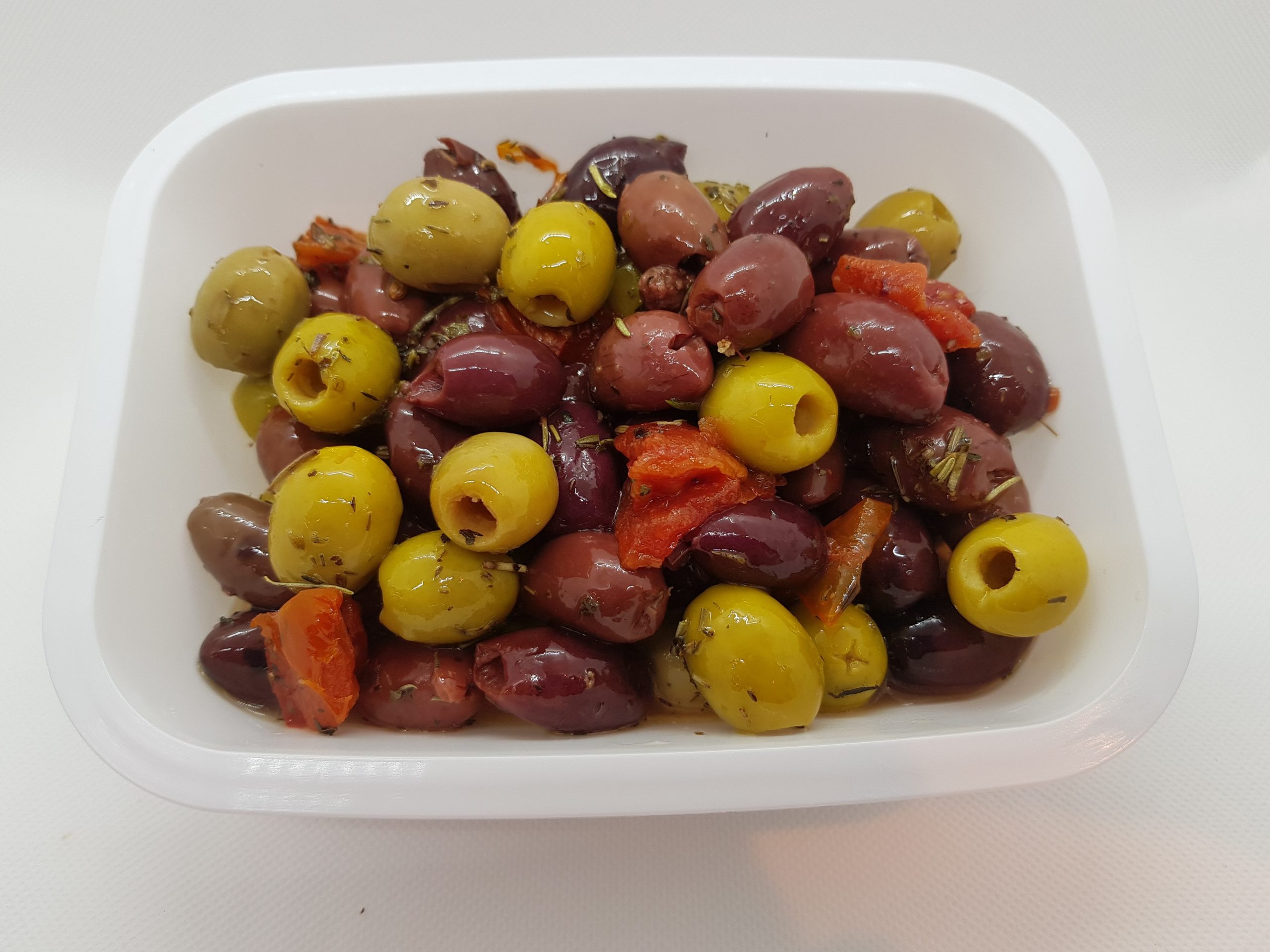 Coktail deshuesado  3 variedades aceitunas deshuesadas hierbas provenzales y pimiento rojo.