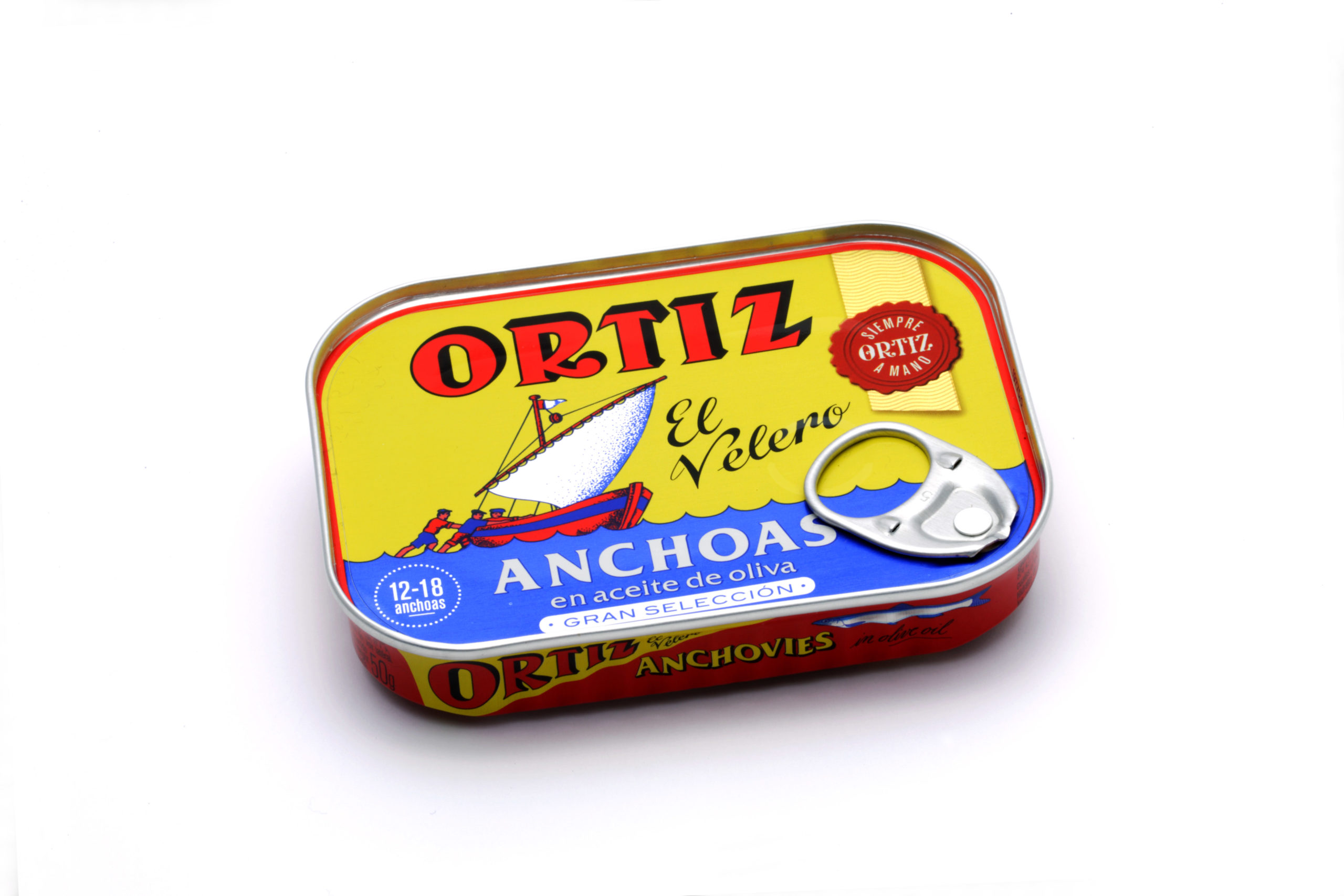 Elaboradas y fileteadas con esmero, una a una, las Anchoas Ortiz se pescan durante la Costera de Primavera y se elaboran en fresco para mantener todo su sabor. Maduran en barriles con sal durante un periodo mínimo de 6 meses. Una vez maduradas, se comercializan en aceite de oliva y fileteadas a mano una a una o en salazón. La Anchoa de la especie Engraulis encrasicholus es la más apreciada del mundo. Gracias a esta esmerada elaboración tradicional conseguimos una Anchoa con una carne compacta y un sabor intenso.