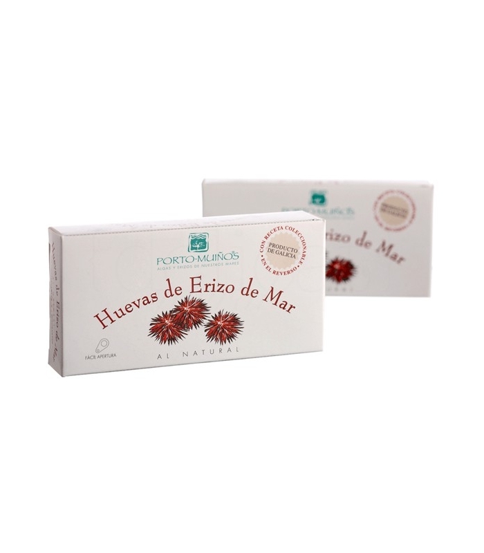 Huevas de erizo frescas de las Rías Gallegas al natural, limpias y empacadas manualmente a granel.