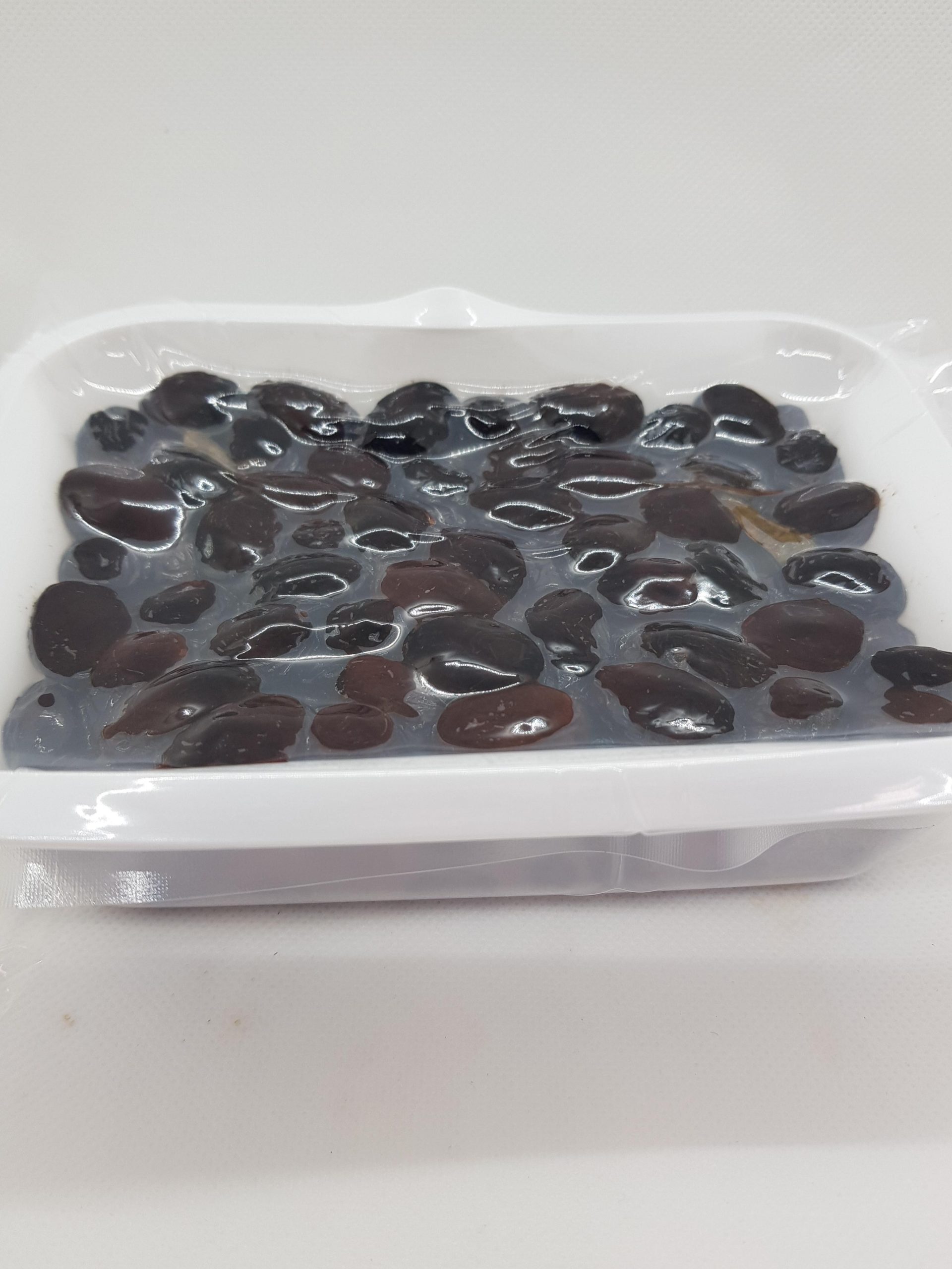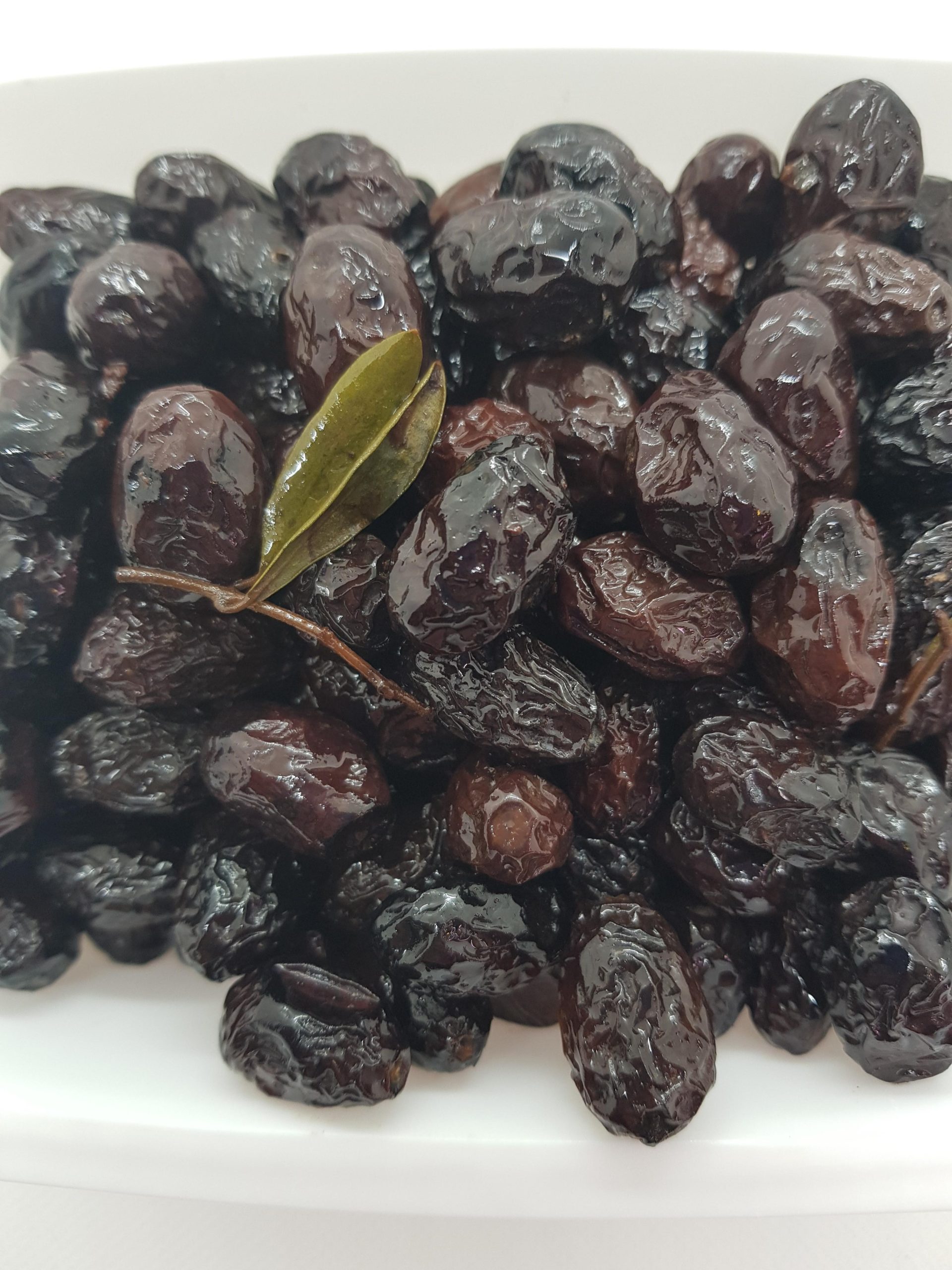 Aceitunas negras muertas elaboradas a través de la negra de Aragón y arrugadas con sal y frio de forma artesanal , sin conservantes , colorantes ,potenciadores de sabor o cualquier otro tipo de producto químico.