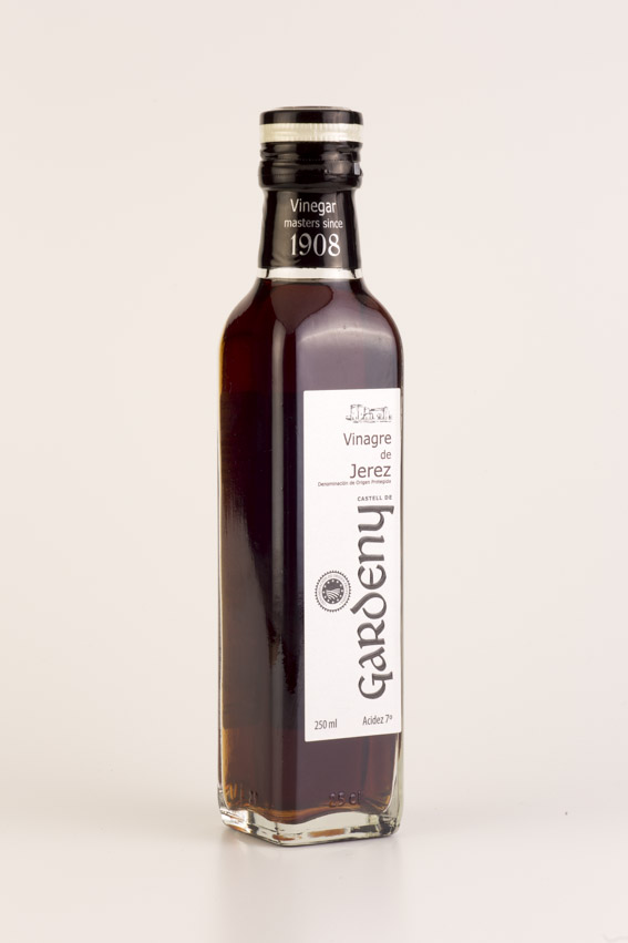 Vinagre Gardeny. Jerez. 250 ml. Vinagre de vino de Jerez. Presentación en botella de cristal.